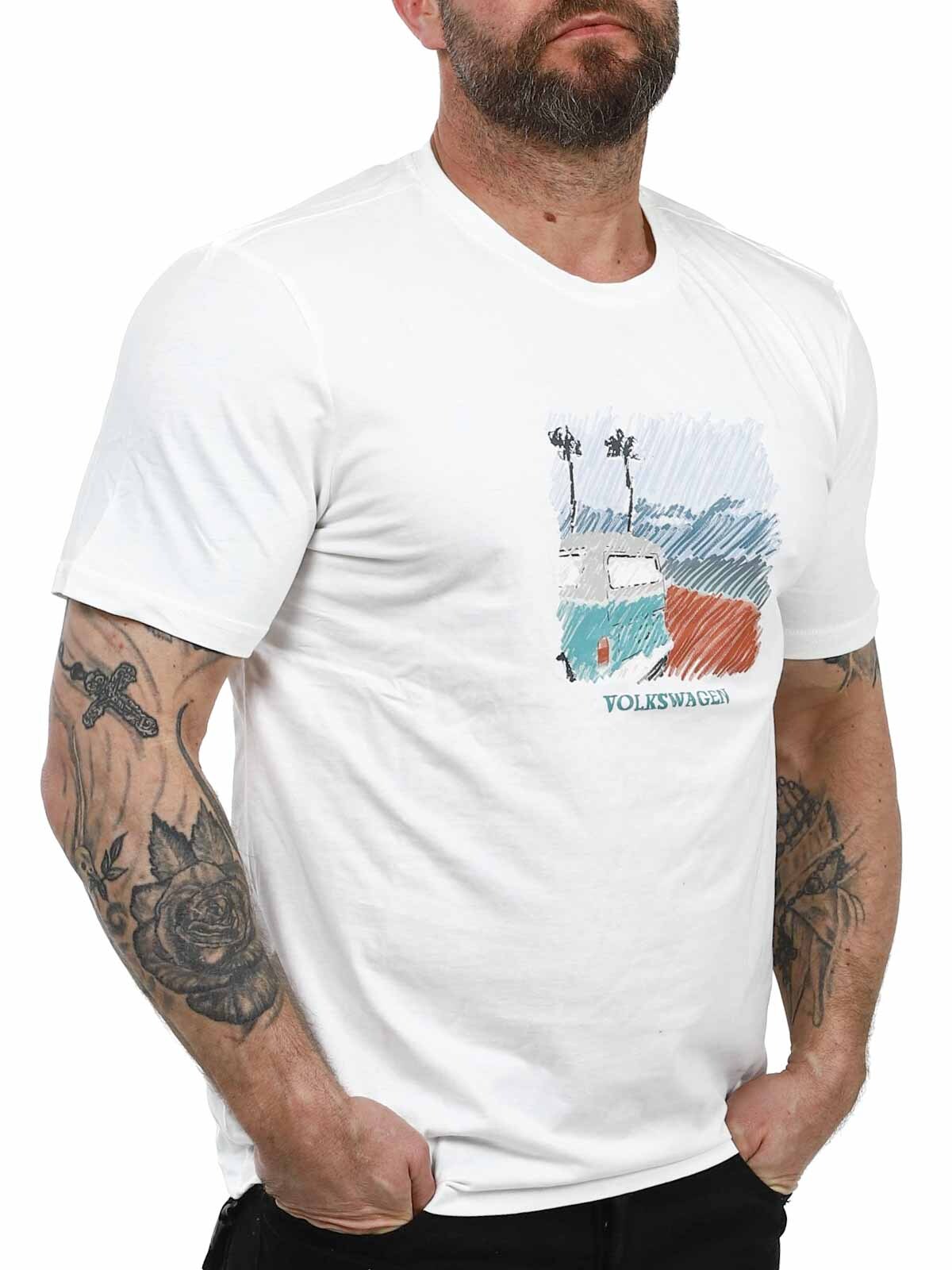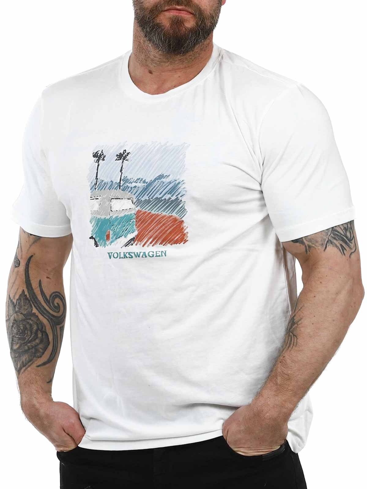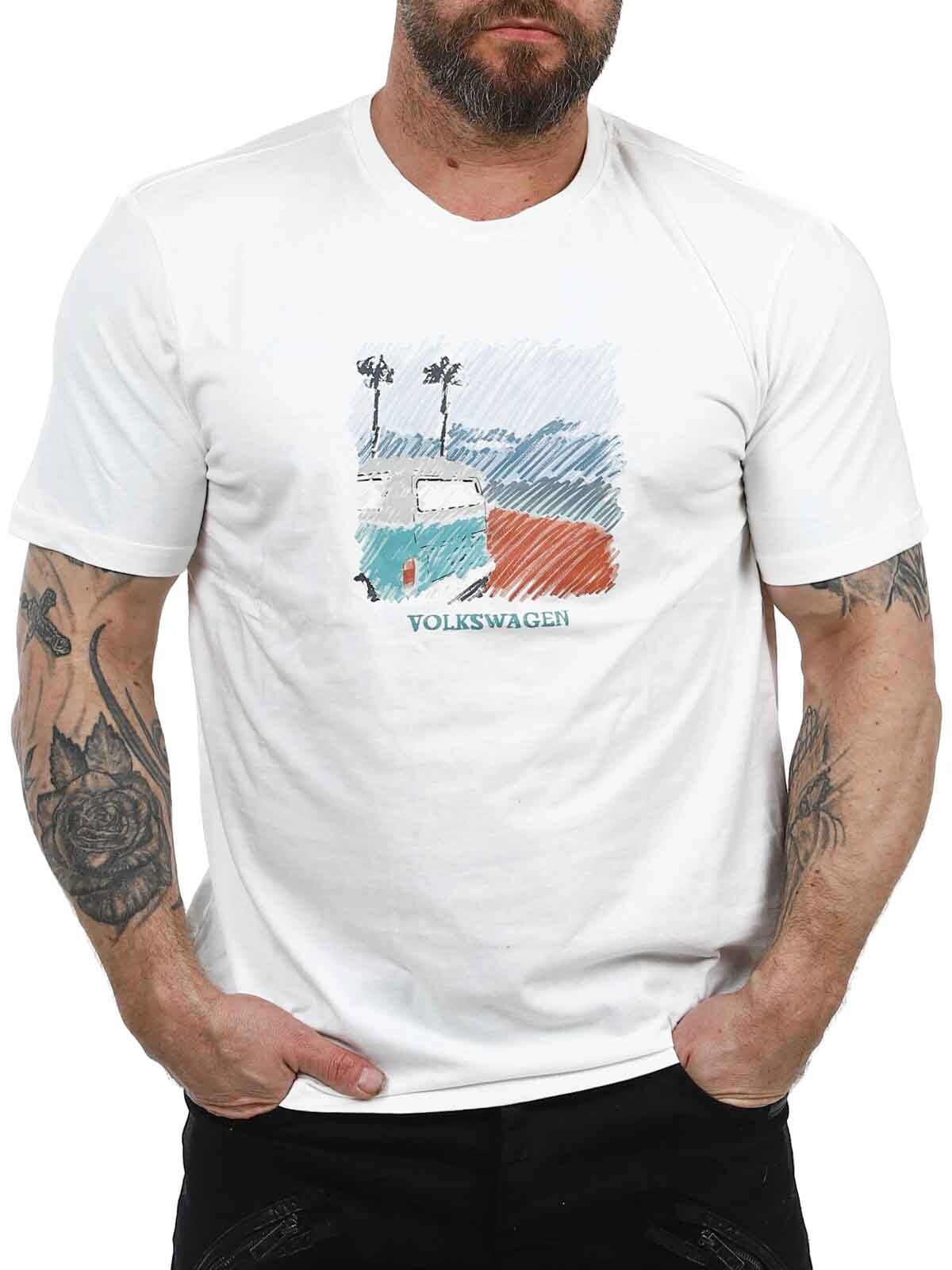 Cotton knit T-shirt with an artistic print of a classic Volkswagen bus. Perfect for those who love vintage cars, surf culture or a casual summer style. Wear it with jeans or shorts for a casual and stylish outfit!