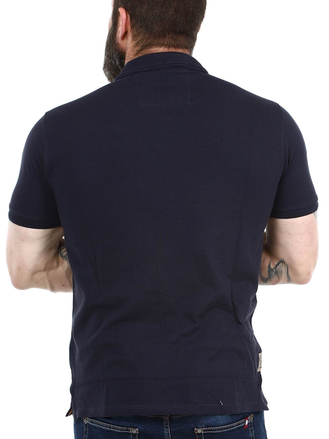 Short-sleeved piqué detailed with print, patches and logo. It has buttons at the neck and a short slit at the sides at the bottom. Ribbed collar and cuffs.