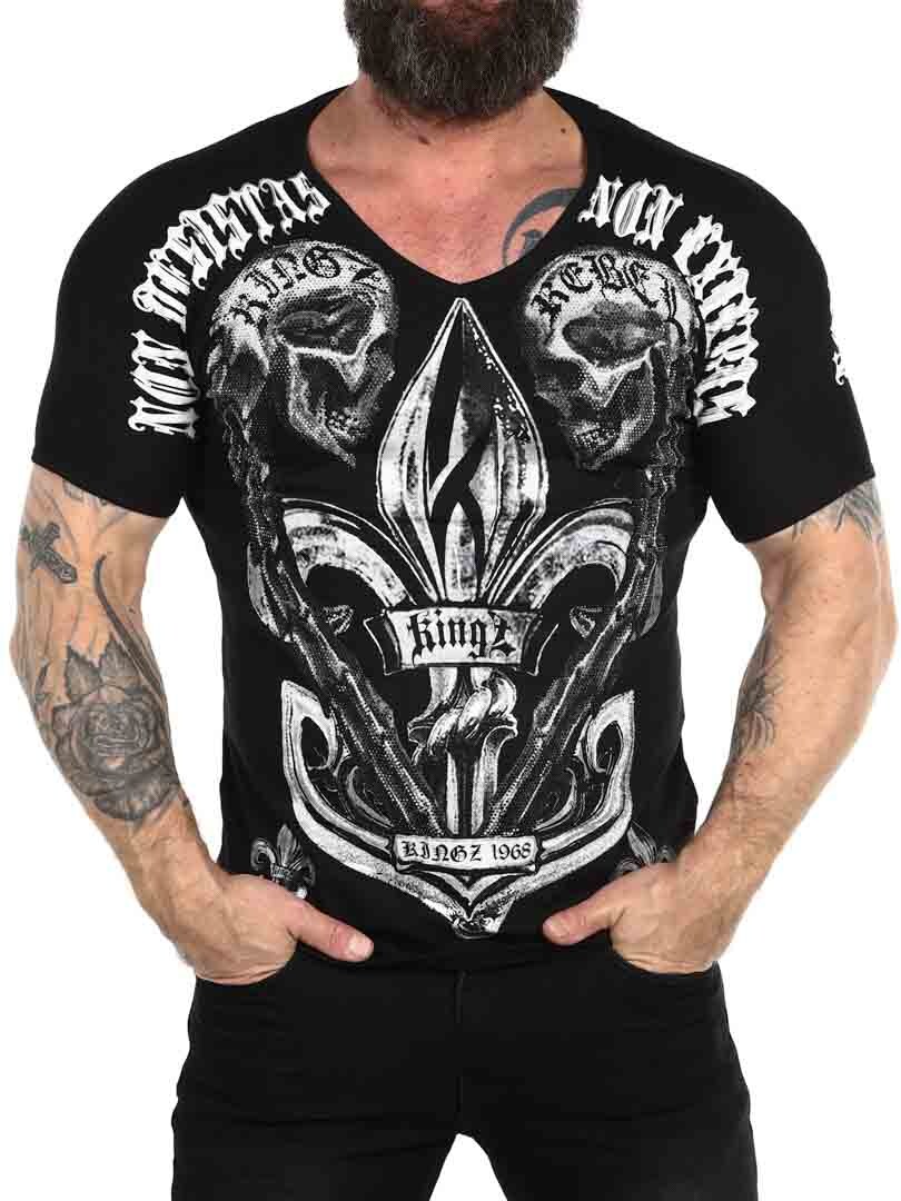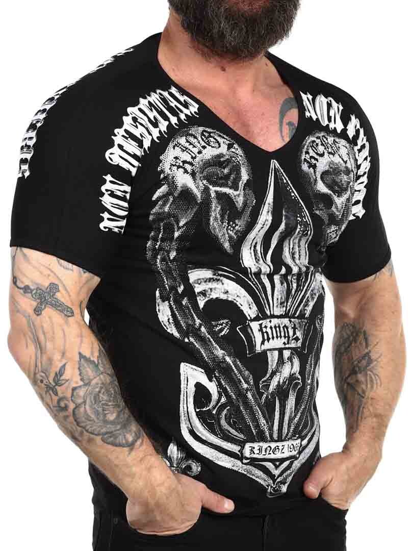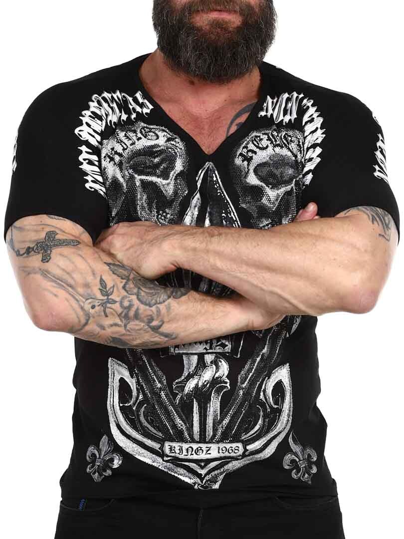 V-neck tee with print and rhinestones. Made of comfortable cotton material with a slim fit. This cool t-shirt is for those who want to stand out from the crowd!