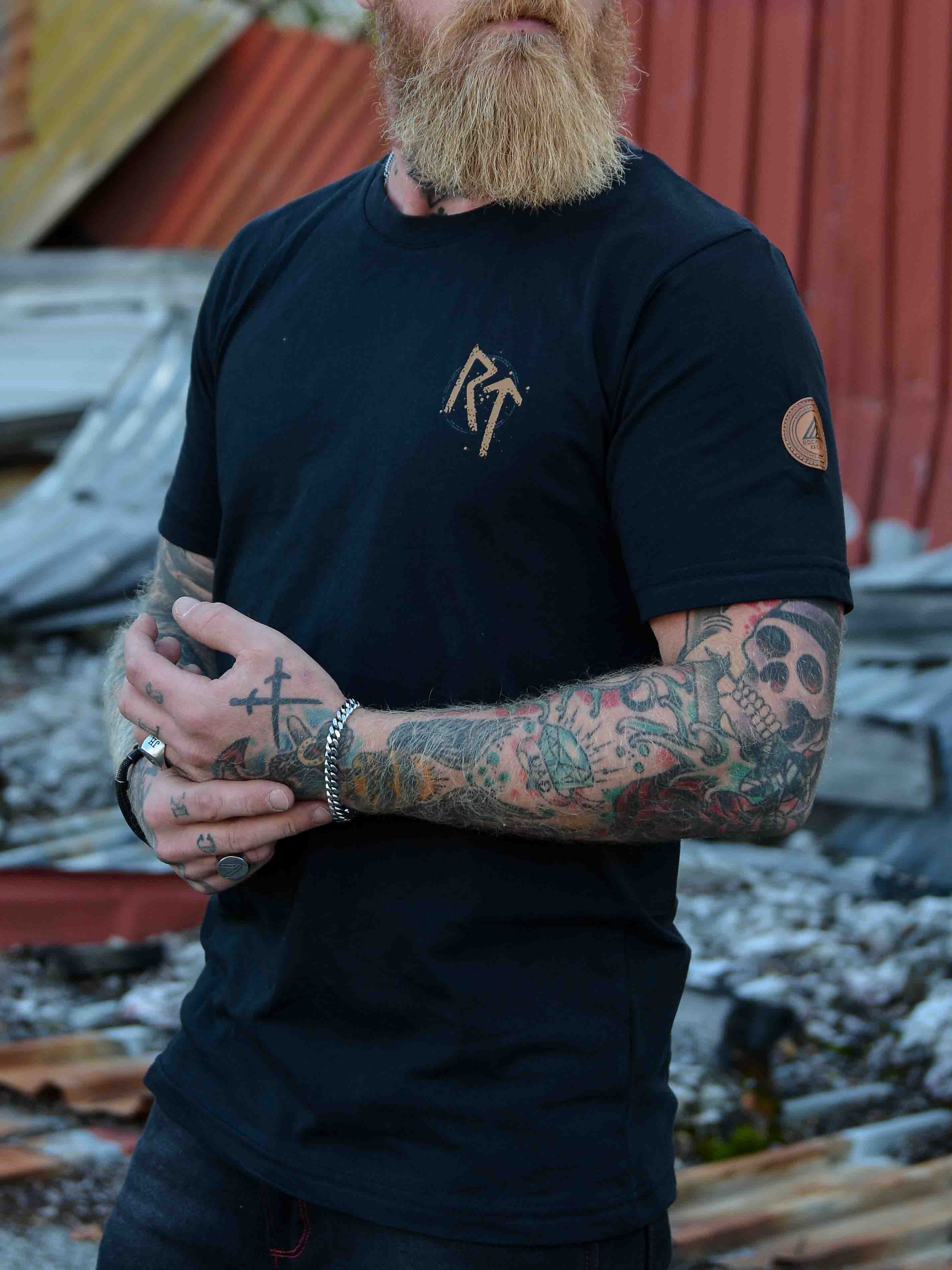 ⚔ A design rooted in the world of the Vikings, capturing warrior courage, adventurous spirit, and the drive to go a-Viking (að fara í víking) across uncharted horizons. On this garment, a special rune emblem features Raido ᚱ and Tiwaz ᛏ – symbols of strength for the road ahead, with protection from Tyr and the strength to follow your journey safe with courage and justice. ⚔
