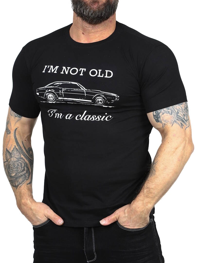 Black t-shirt with a fun print in white at the front. It has a classic fit with a rounded neck opening. Produced in a lovely and stretchy cotton quality. This t-shirt is specially made for our customers and is only available at RockDenim!