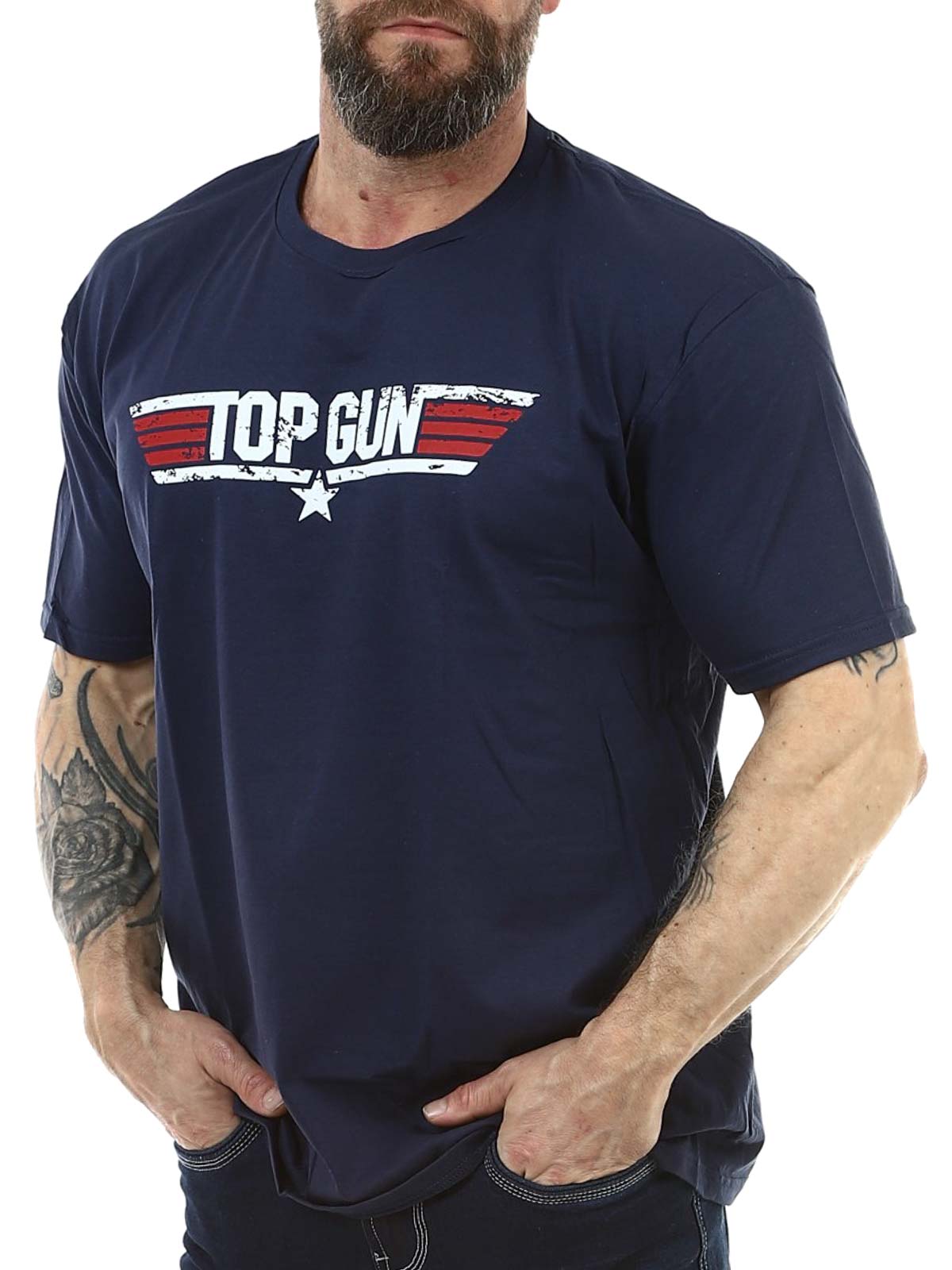 This black Top Gun t-shirt is a must-have for fans of classic action movies and iconic 80s style. It has a classic fit and rounded neck opening. Made from 100% cotton.