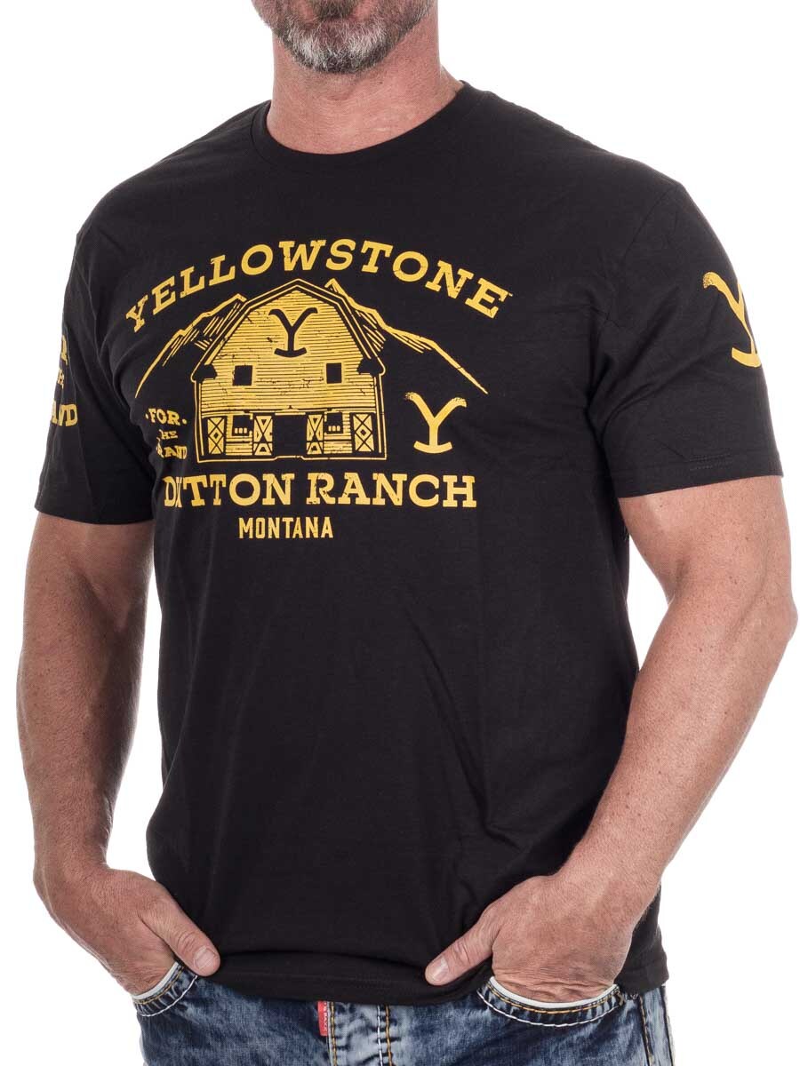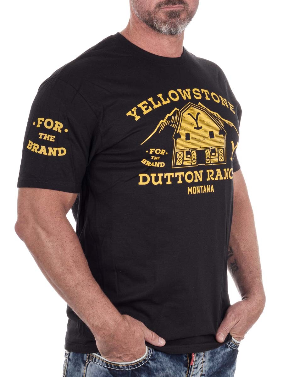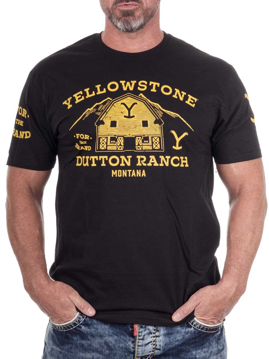 T-shirt featuring the classic Dutton Ranch print from the popular TV series Yellowstone. Made from soft cotton for comfort and durability. It has a straight fit and a rounded neckline.