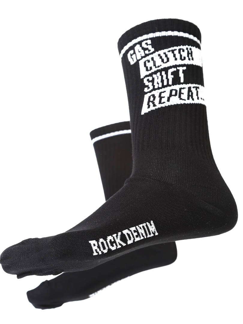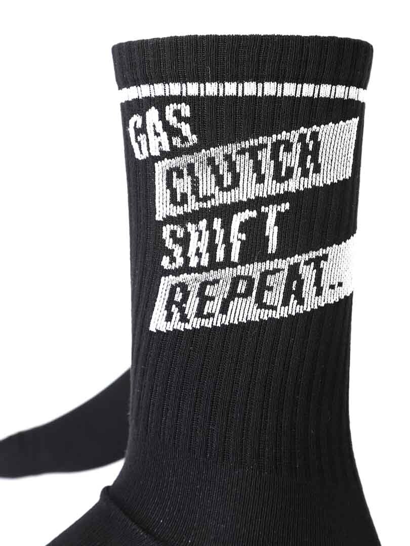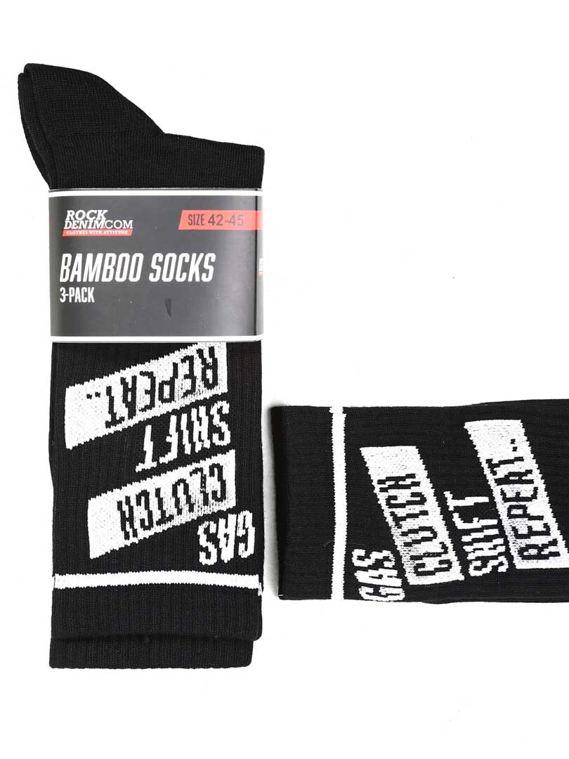 3 pack of high quality bamboo socks with "Gas, clutch, shift, repeat" print