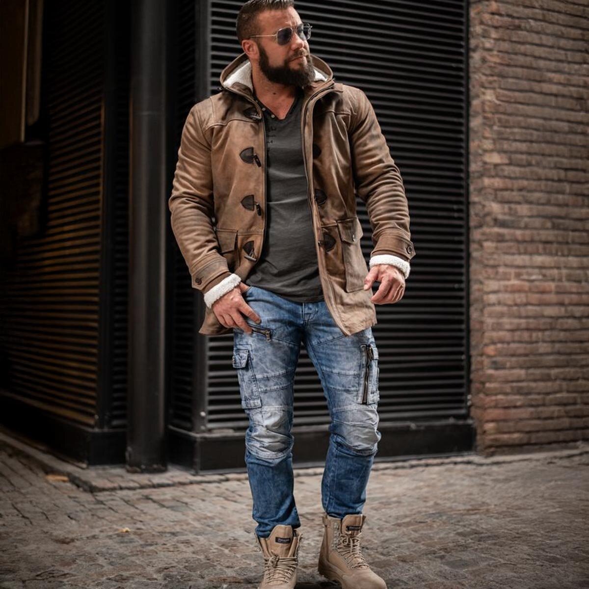 Want an outfit that speaks specifically to strength and style? This curated look bridges the gap between vintage warmth and tactical streetwear utility.