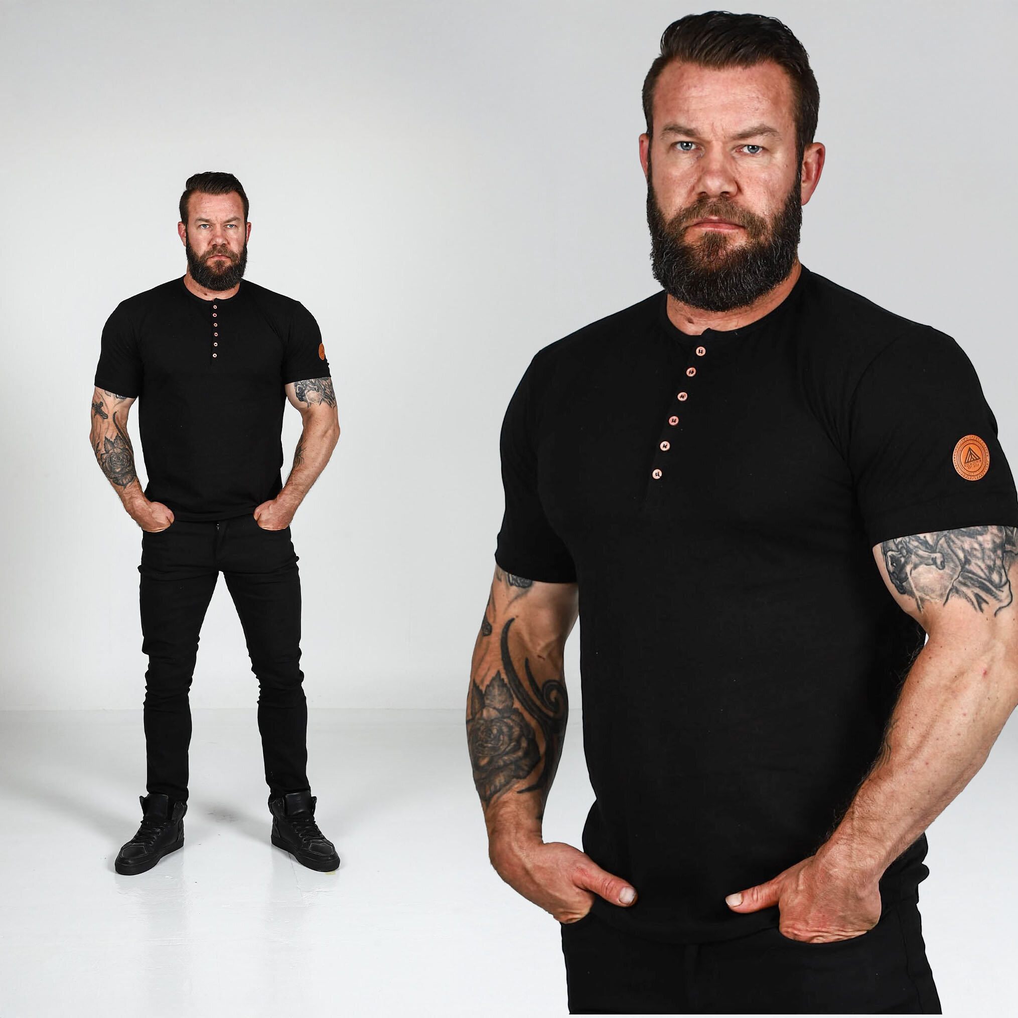 Skapa en tidlös och maskulin stil med den svarta RD Zuto T-shirt, en henley-modell med snygga knappdetaljer. Kombinera den med de djupsvarta Haleth Cipo & Baxx Jeans för en enhetlig och tuff look. Outfiten fullÀndas med ett par svarta sneakers för en komplett outfit med diskret men kraftfull attityd.