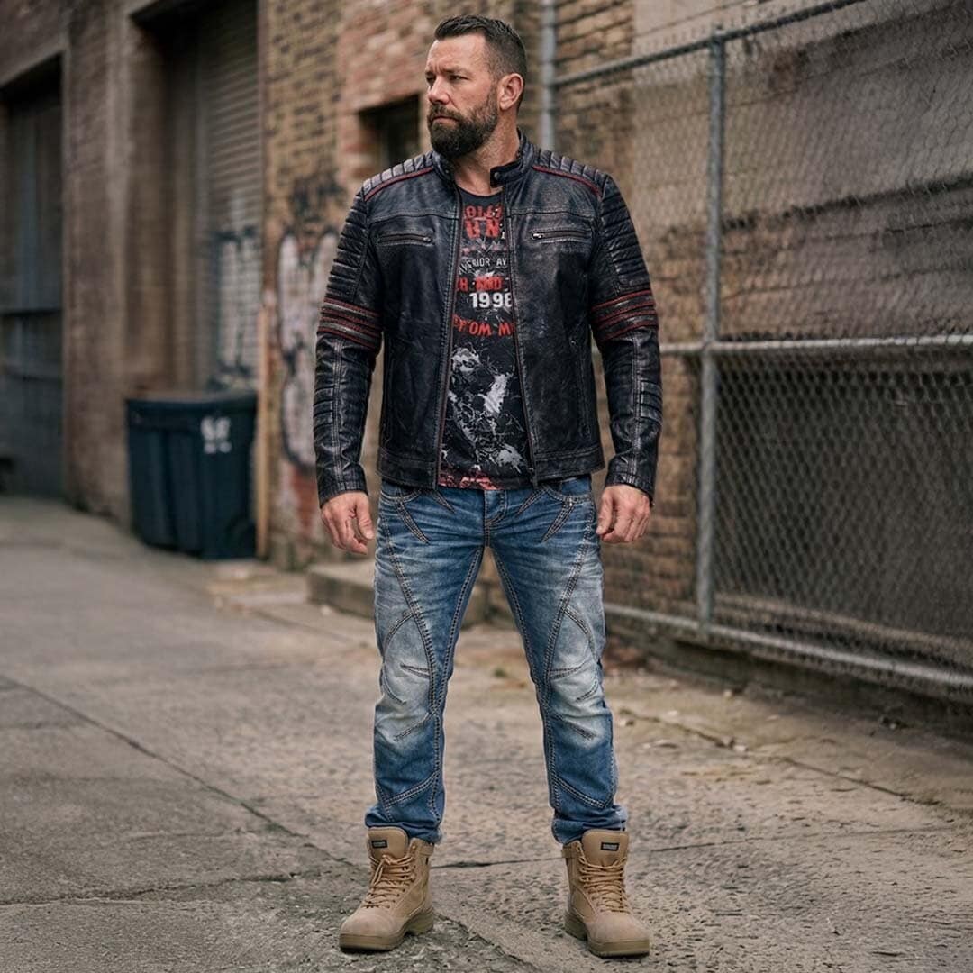 Rough Biker Style - Where Leather Meets Industrial Denim